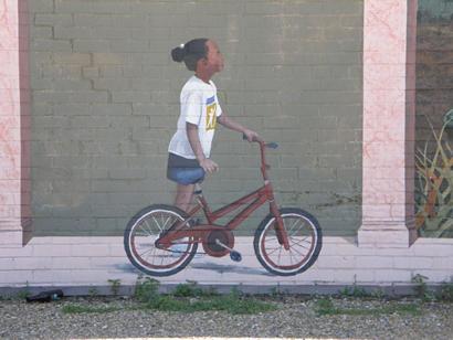 “Listen to my directions and follow them carefully. Put your foot on the top pedal. Keep both hands on the handle bars and push down slowly on that pedal. When the bike starts to move, lift your other foot and put it on the other pedal. Then, raise your head and eyes to look forward so you can see where you are going.” She looked at me, and I could see the fear.
